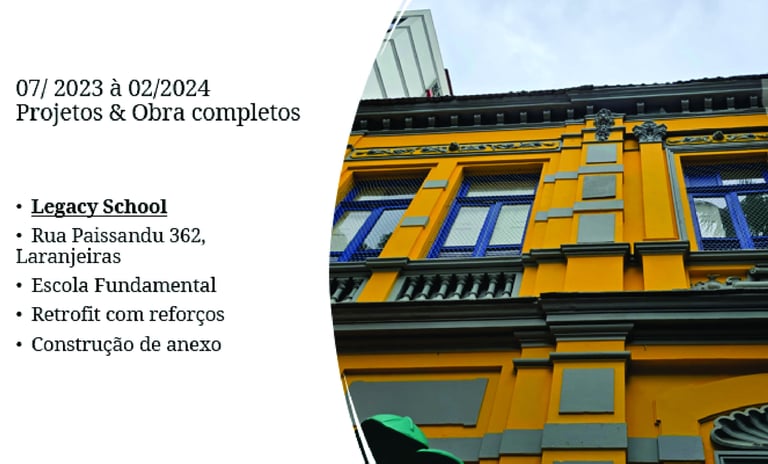 Estudos de viabilidade, recuperações estruturais e reformas no Complexo da Suderj (Maracanã, Maracanãzinho, Parque Aquático Júlio de Lamare, Célio de Barros) .Recuperação estrutural, reformas e construções na Secretaria de Polícia civil RJ, Rua da Relação 42.